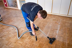 Zuerst gründlich saugen. Sand und Schmutz werden entfernt, um Kratzer zu vermeiden.